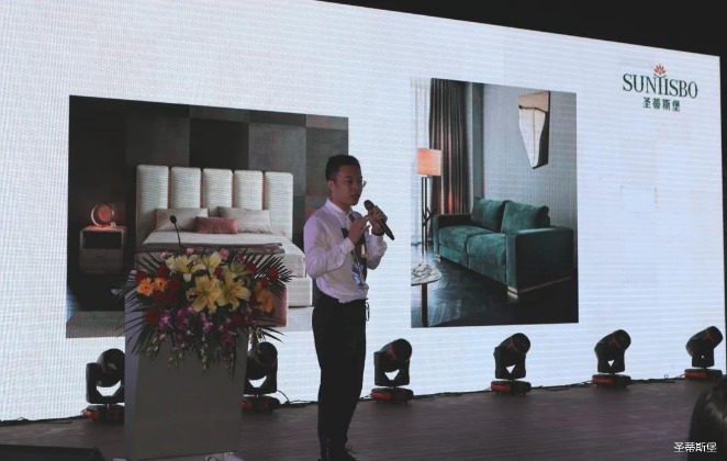 华灯璀璨的开场仪式,点燃了现场如火如荼的气氛。今年会jnh集团集团营销总经理陈玉伟先生对晚会进行了主题发言,他对2020年的营销工作进行了总结,并着重从营销工作部署、重点项目开展、产品整合、拎包帮扶、渠道运营和移动+定制整装优势等方面对2021年的营销工作做了全面的统筹规划。同时,他还讲解了“美国梦凯莎床垫”新品的产品工艺、市场优势、产品定位,使经销商对我们的新产品拥有更深入的认识和了解。